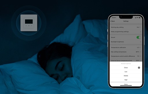 Kolejną zaletą Avatto WT200 jest wyświetlacz LCD. Z jego poziomu dowiesz się o ustawionym trybie pracy, połączeniu z siecią, ustawionej temperaturze czy włączonej blokadzie bezpieczeństwa. Co więcej, termostat wyświetla aktualną godzinę. Dzięki temu wszystkie najważniejsze informacje masz w zasięgu ręki. Możesz też ustawić jasność ekranu lub całkowicie go wyłączyć.