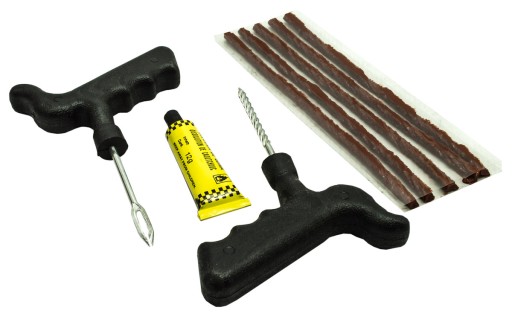 Zestaw naprawczy do opon. Zastosowanie zestawu do napraw opon umożliwia szybką, skuteczną oraz tanią naprawę uszkodzeń typu pogwoździowego.