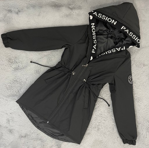 - Najmodniejsze, dzianinowe wykończenie wzdłuż zamka i kaptura.