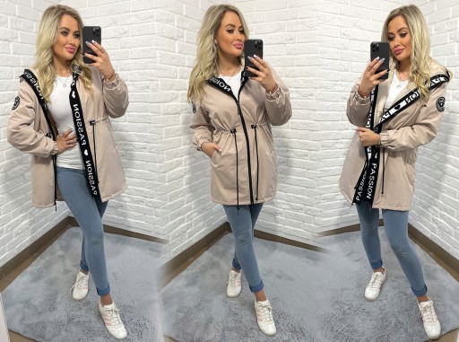 - Najmodniejsze, dzianinowe wykończenie wzdłuż zamka i kaptura.