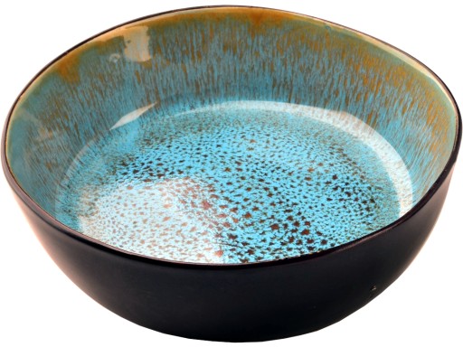 Do zdobienia misek zastosowano szkliwienie reaktywne.