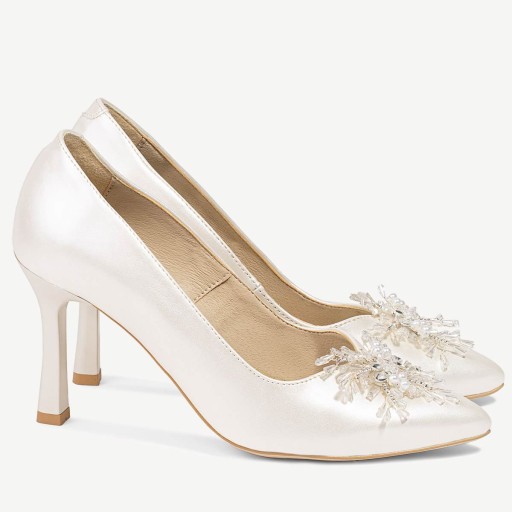 Perłowe szpilki Marika to buty, które łączą w sobie wysokiej jakości materiały, z idealnie wyprofilowaną linią buta oraz obcasem w formie szpilki. Szpilki Marika wykonane są z wysokiej jakości skóry ekologicznej perłowej, która jest łatwa w czyszczeniu i pielęgnacji. Przednią część cholewki zdobi ozdoba „płatek śniegu”, dzięki czemu but prezentuje się niczym pantofelek z bajki!