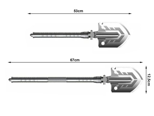 ✅ Długość z dwoma elementami rękojeści: 53cm