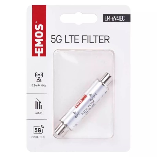 filtr 5G: tak|ilość wejść: 1|ilość wyjść: 1|izolacja między wejściami: nie dotyczy|LTE filtr: tak|maksymalny poziom sygnału na wyjściu: nie dotyczy|opakowanie: 1 szt., pudełko|pasmo tłumienia: 700–2 400 MHz|poziom szumów: nie dotyczy|produkt: 5G filtr|przejście dla zasilania wzmacniaczy: tak, 300 mA|regulacja zysku: nie dotyczy|rozstaw otworów: nie dotyczy|stopień ochrony: IP20|tłumienie w paśmie: >40 dB|wejścia: złącze IEC|wymiary: 16 × 68 mm|wzmocnienie: nie dotyczy|zakres częstotliwości: 0,3–694 MHz|zasilanie: nie dotyczy|złącza: złącze IEC