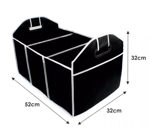 Po rozłożeniu, organizer ma wymiary 52 x 32 x 32 cm, co oznacza, że posiada wystarczająco dużo miejsca na przechowywanie potrzebnych przedmiotów, nie zajmując przy tym zbyt dużo miejsca w samochodzie.