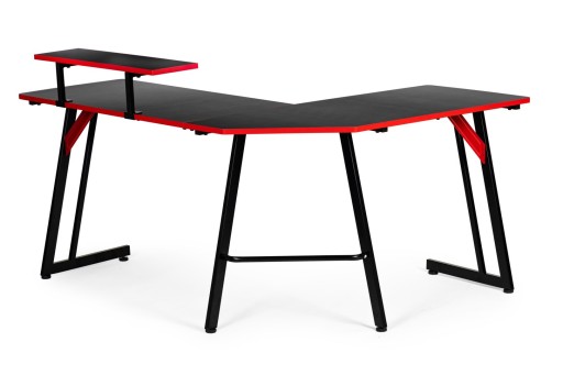 - SPECJALNA PÓŁKA - dodatkowym elementem tego biurka jest duża półka, umieszczona na jednym z narożników. Półka ta stanowi dodatkową przestrzeń do przechowywania sprzętu gamingowego, książek, lub dekoracji, dzięki czemu użytkownik może utrzymać porządek na swoim stanowisku pracy.