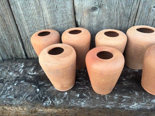 Piękne stare donice wazony gliniane.Jest to stara produkcja i wzór lata 60/70.Wazony przeleżały swoje lata w piwnicach a teraz dostaną nowe życie.Wazony całe nie popękane.Wyniary: wysokość około 15cm, szerokość około 11cm mogą być odchyłki wymiarowe bo jest to ręczna robota.Cena dotyczy 1sztuki.Do wysyłki przedmioty zostaną bardzo dobrze zabezpieczone.Przy zakupie 10sztuk jedna sztuka gratis.