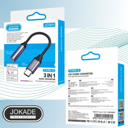 Adapter 3w1 Słuchawkowy TYP-C na MINI JACK 3,5mm KRÓTKI NYLONOWY SPLOT