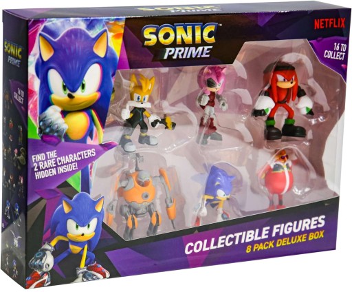 Zestaw zawiera 8 figurek z bohaterami animacji Sonic Prime. Do zebrania jest 16 figurek, w tym 4 rzadkie.
