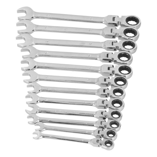 Zestaw kluczy grzechotkowych z elastyczną głowicą, 12 szt., metryczny