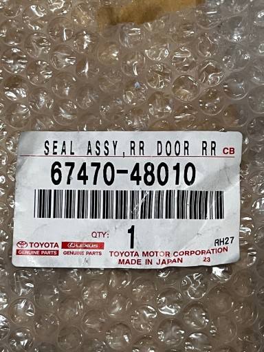 Oryginalna uszczelka prowadnicy tylnych drzwi Lexusa (prawa) 67470-48010