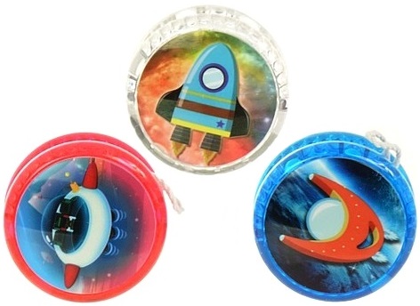 ッ Zostało wykonane z transparentnego tworzywa, wraz z naklejkami KOSMOS- różne obrazki po dwóch stronach. Jest wyposażone w efekt świetlny, który się uruchamia, gdy jojo się kręci.
