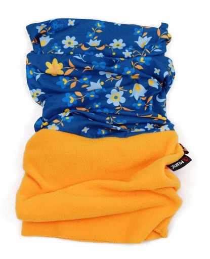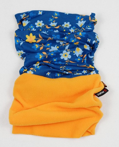Buff, komin z mikrofibry w kolorze ciemnoniebieskim z kwiatowym wzorem i pomarańczowego polaru