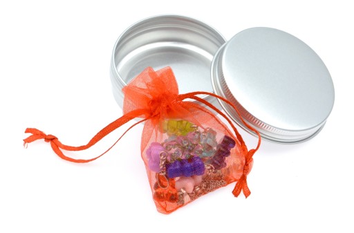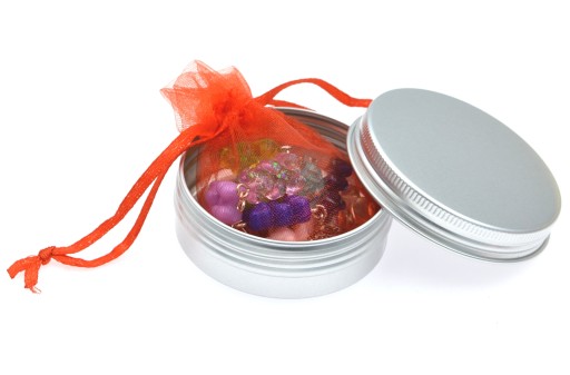 CAŁOŚĆ ZAPAKOWANA w mini woreczek z organzy i aluminiową puszkę.