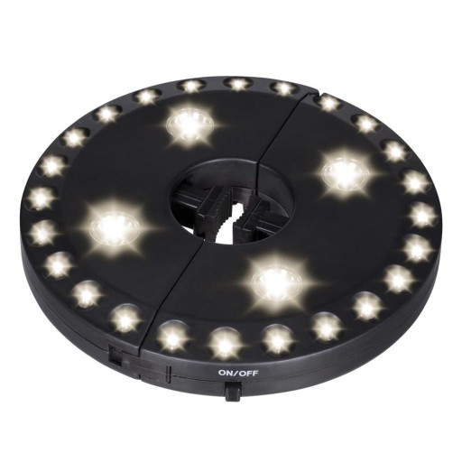 Super fajna Lampa Ledowa montowana pod parasol to idealne rozwiązanie dla osób lubiących spędzać wieczory w ogrodzie lub tarasie. Lampę zakłada się na rurę parasola ogrodowego bez użycia narzędzi. Uchwyt jest elastyczny, może być używany do różnego rozmiaru nogi parasola. Produkt ten idealnie sprawdzi się również podczas spotkania plenerowego, ogniska, biwaku czy w namiocie.