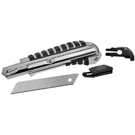 Nóż 18 mm ma poręczną automatyczną blokadę.