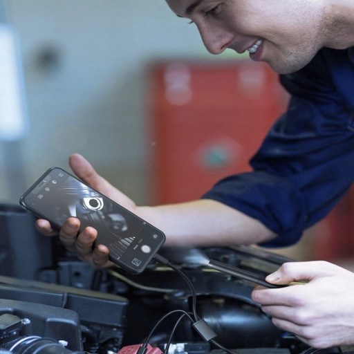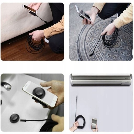 Kamera posiada 3 wymienne końcówki. Każda z nich ma inną funkcję (hak, magnes, lusterko). Kamera jest połączona 2 metrowym przewodem, który jest w miarę elastyczny i wytrzymały. W łatwy sposób możesz dotrzeć do bardzo trudno dostępnych miejsc i zobaczyć, co jest przyczyną usterki.