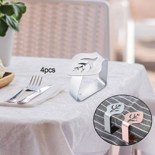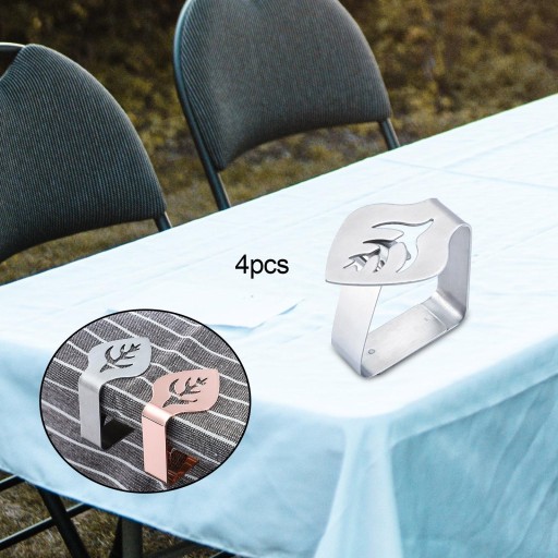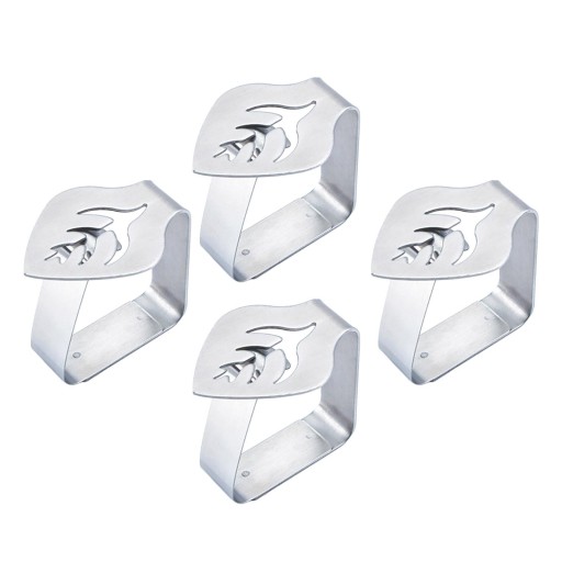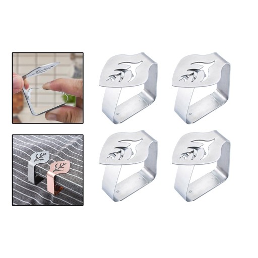 [Materiał]: te klipsy do obrusów są wykonane ze stali nierdzewnej, trwałe i wytrzymałe, mocno trzymają obrusy, bez zmarszczek.