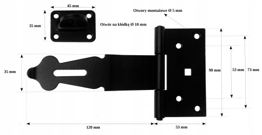 Wykorzystywany do montażu w drzwiach furtkach meblach skrzyniach drewnianych, również jako element ozdobny jako zamknięcie w połączeniu z kłódką