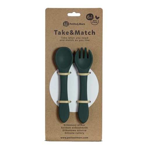 Силиконовые детские столовые приборы Petite&mars Misty Green