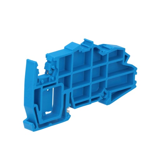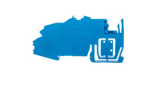 Wspornik szyn zbiorczych z funkcją zacisku końcowego i płytką oddzielającą można zatrzaskiwać na TS 35 o grubości 7,5 mm, kolor niebieski.