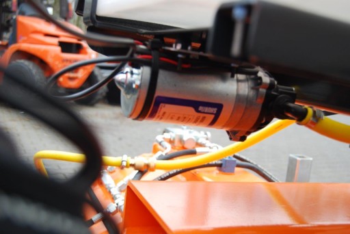 - Napęd hydrauliczny z silnikiem przemysłowym( gerotorowym) 14 KW. Dzięki zastosowaniu silnika hydraulicznego i jednocześnie odpowiednio dobranej prędkości obrotowej zbierany materiał jest bezproblemowo wrzucany do wanny zamiatarki. Silnik idealnie sprawdza się nawet w czyszczeniu starego i głęboko osadzonego brudu, np. wrośniętego w fugi kostki brukowej mchu.
