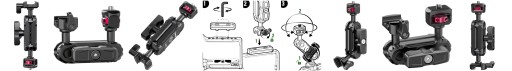 Dwie głowice kulowe 360 stopni umożliwiają ustawienie akcesoriów pod dowolnym kątem. Wygodnym pokrętłem zablokujesz je w odpowiedniej pozycji.