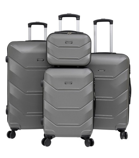 Zestaw podróżny 4w1 oferuje komplet składający się z dużej (28 cali), średniej (24 cale), małej (kabinowej, 20-calowej) walizki i kuferka (14 cali).