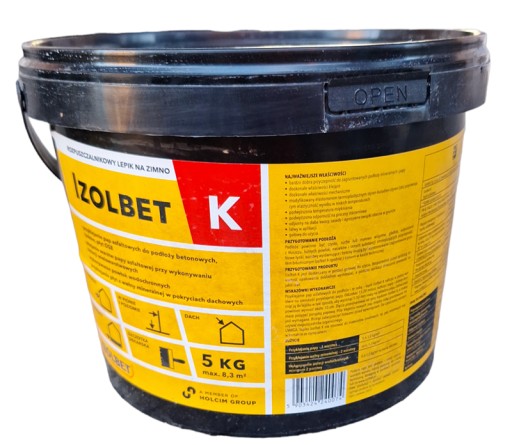 Do przyklejania pap asfaltowych do: wcześniej wykonanych pokryć papowych (izolacje wielowarstwowe), podłoży betonowych na zewnątrz budynków zagruntowanych wcześniej IZOLBETem-A.
