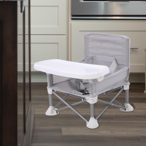 Дорожное сиденье-бустер с дорожной сумкой и съемным подносом, стульчик для кормления, серый