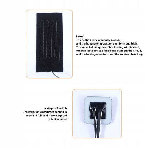 Funkcja:1. Wodoodporny przełącznik: Poduszka grzewcza do ubrań ma wodoodporny przełącznik, wodoodporna powłoka premium jest równa i pełna, a wodoodporny efekt jest lepszy.