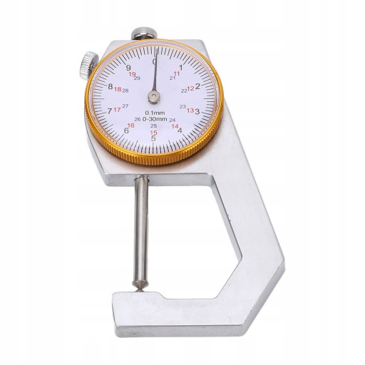 4. PARAMETRY TECHNICZNE: Rozdzielczość grubościomierza z okrągłą tarczą wynosi 0,1 mm, zakres pomiarowy od 0‑30 mm, odpowiedni dla twórców biżuterii rzemieślniczej