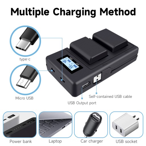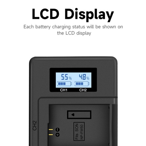 【Idealne rozwiązanie do tworzenia kopii zapasowych】 2 akumulatory XNP-FW50, 1 x ładowarka LCD z 2 gniazdami