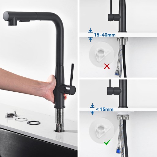 - Zalecamy montaż tej baterii zlewozmywakowej na blatach o grubości mniejszej niż 40 mm.