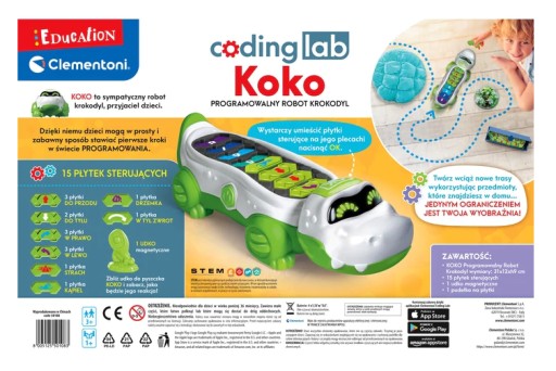 Dzięki Koko dzieci poznają podstawowe pojęcia programowania i robotyki edukacyjnej w prosty i zabawny sposób, rozwijając umiejętność rozumienia związków przyczynowo-skutkowych.