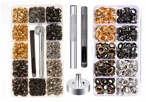 - te oczka mogą wzmocnić otwory, aby uniknąć rozdarcia tkaniny, plandeki, płótna, winylu, skóry i tkaniny. Idealny do naprawy lub zdobienia skóry, odzieży, torebek, zasłon i kurtek.