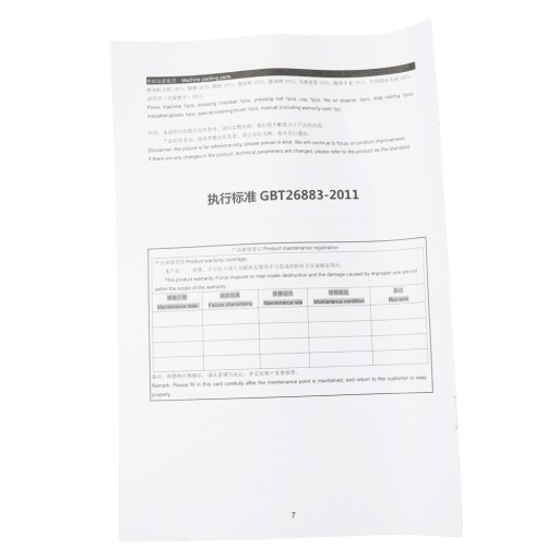 - Prędkość prasowania: 5 kg na godzinę (dla orzeszków ziemnych)