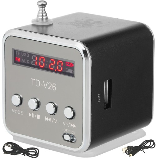 ⭐ Mini radio zastępuje kilka urządzeń. Oprócz tunera urządzenie wyposażone jest w odtwarzacz mp3, gniazdo miniUSB oraz USB i slot na karty microSD (TF). Ma także wejście słuchawkowe mini Jack 3,5 mm, może być używany jako głośnik do innych urządzeń, np. smartfona. Z kolei wyjście na słuchawki mini-jack 3,5 mm oraz gniazdo AUX IN do zewnętrznych głośników.