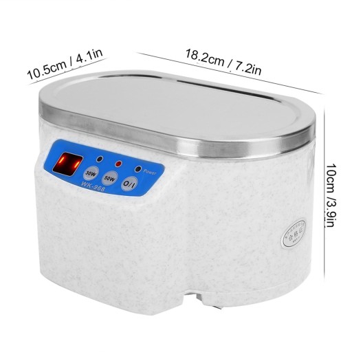 Rozmiar produktu: 18,2 * 10,5 * 10 cm Czas pomiaru: 30 W, około 5 minut, 50 W (1-59 minut) Napięcie: 220 VFunkcja funkcji 1. Wyświetlacz dwucyfrowy2. Dostępne są dwie opcje zasilania 30 W i 50 W3. Regulowany czas czyszczeniazasada:Gwałtowna zmiana ciśnienia akustycznego, gdy fale ultradźwiękowe rozchodzą się w cieczy, powoduje, że ciecz ulega silnej kawitacji i emulgacji, w wyniku czego co sekundę powstają miliony maleńkich pęcherzyków kawitacyjnych. Pęcherzyki te powstają szybko w dużych ilościach pod wpływem ciśnienia akustycznego i nadal gwałtownie pękają, powodując silną siłę uderzenia i podciśnienie zasysania, wystarczające do usunięcia uporczywego brudu oraz zabicia bakterii i wirusów.