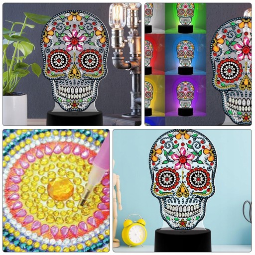 Do you wanna a delicate and beautiful LED lamp decoration? This table lamp features a creative skull design and diy diamond painting design. It create a charming and festive atmosphere. Perfect decorations for holiday and parties or simply place at home to be a night light.