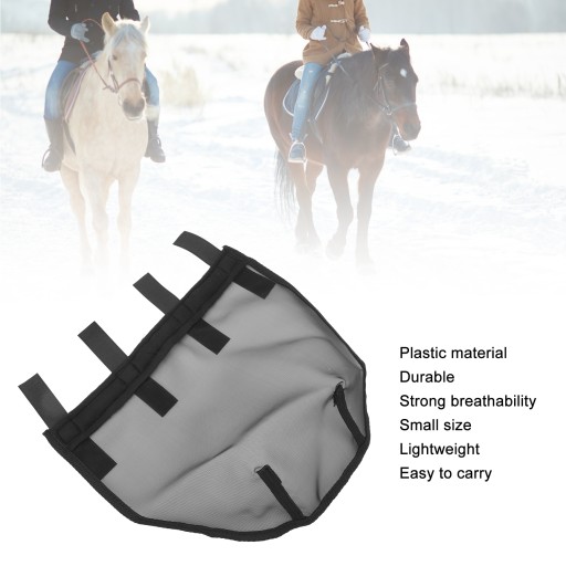 3. Silna oddychalność: maska na nos wykonana jest ze wzmocnionej, półprzezroczystej tkaniny o drobnej siateczce, która zapewnia długotrwałe użytkowanie, dzięki czemu przepływ powietrza jest naturalny i nie wpływa na oddychanie konia.