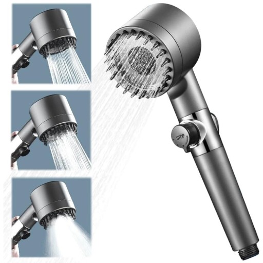 - Okrągła głowica prysznicowa ma 3 strumienie/tryby, które można łatwo przełączać za pomocą prostego przełącznika.