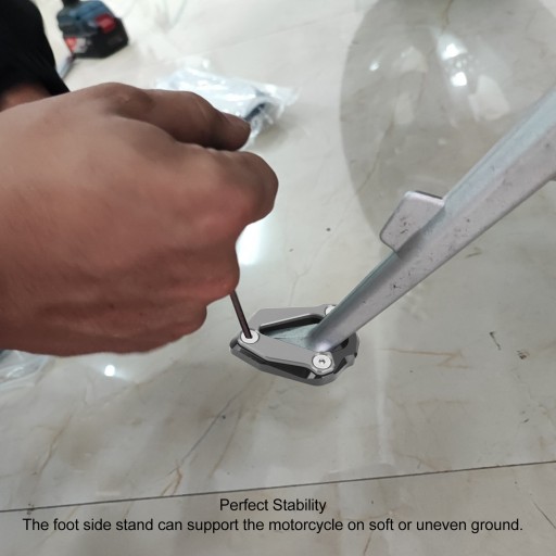 2. Stabilność: Dzięki obszernemu podnóżkowi Twój motocykl zawsze będzie miał bezpieczną podstawę, nawet na miękkim podłożu, błotnistych poboczach, piasku, miękkim asfalcie i nierównej powierzchni.