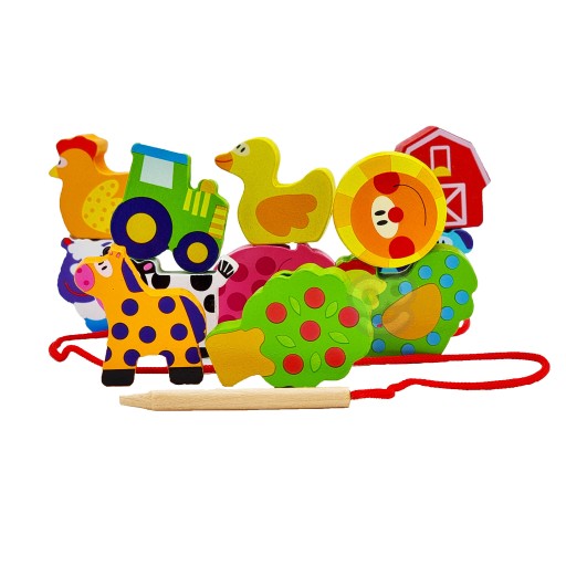 WOOPIE GREEN Drewniane Klocki do Nawlekania Zwierzęta Farma 13 el.