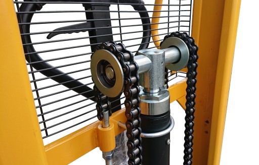 Podnoszenie ładunku odbywa się za pomocą dźwigni ręcznej lub pedału nożnego (tzw. szybka pompa)