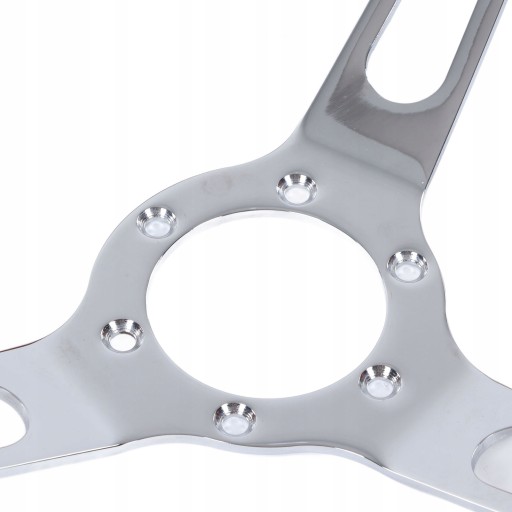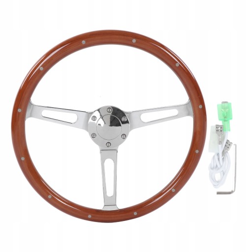 3. Trwała konstrukcja: 3 szprychy ze stali nierdzewnej z chromowanym wykończeniem, zapewniającym lustrzane wykończenie. Uchwyt z drewna orzechowego został lekko bejcowany i pokryty emalią samochodową.