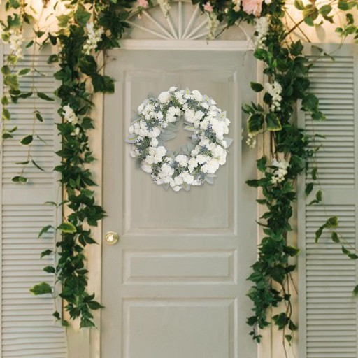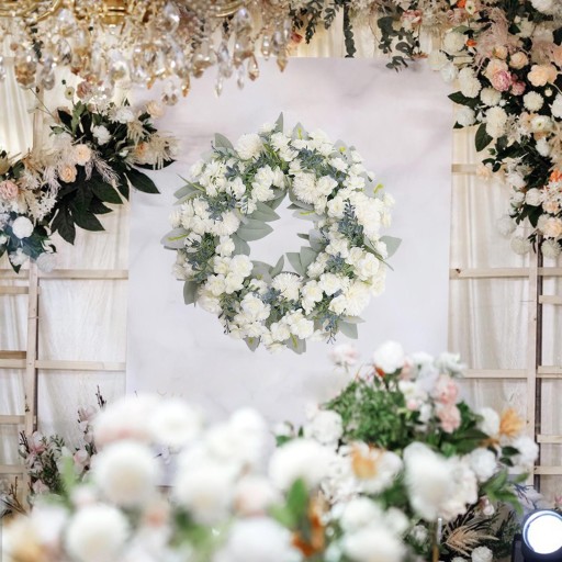 Wieniec kwiatowy Wiszące ozdoby Wieniec na drzwi wejściowe do rekwizytów fotograficznych na zewnątrz Biały