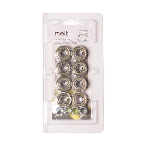 ABEC-9 Molti to łożyska, które wykonane zostały z wysokiej jakości stali węglowej, zapewniającej doskonałą twardość i wytrzymałość. Charakteryzuje się niskim oporem toczenia co przekłada się na większą prędkość w amerykańskiej normie Annular Bearing Engineering Commitee w skrócie ABEC. Istotnym parametrem tego łożyska jest mimośrodowość czyli okrągłość na torze w pierścieniu wewnętrznym i wynosi zaledwie 0,0012mm. Łożysko przeznaczone do rolek, deskorolek i hulajnóg.