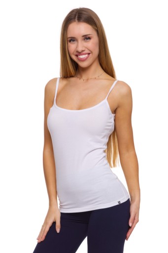 Wykonany z najwyższej jakości bawełny z dodatkiem elastanu, ten tank-top zapewnia uczucie delikatności na skórze, co sprawia, że noszenie go to czysta przyjemność. Ramiączka dodają mu subtelności i lekkości, tworząc efektowny akcent, który podkreśla wyjątkowy urok każdej kobiety. Krój podkoszulka jest regularny, lekko dopasowany, co gwarantuje swobodę ruchów, a jednocześnie delikatnie podkreśla kobiecą sylwetkę.