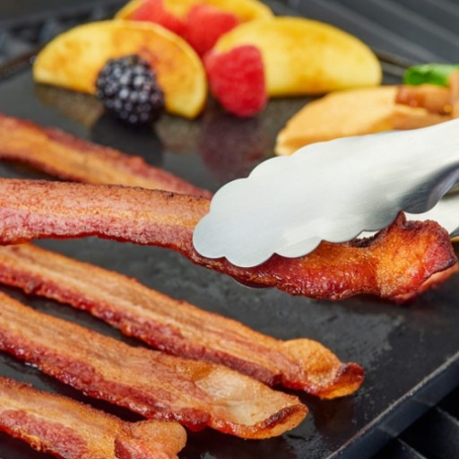 Prążkowana powierzchnia płyty żeliwnej świetnie nadaje się do grillowania mięs i warzyw, na których chcesz uzyskać prążkowanie.